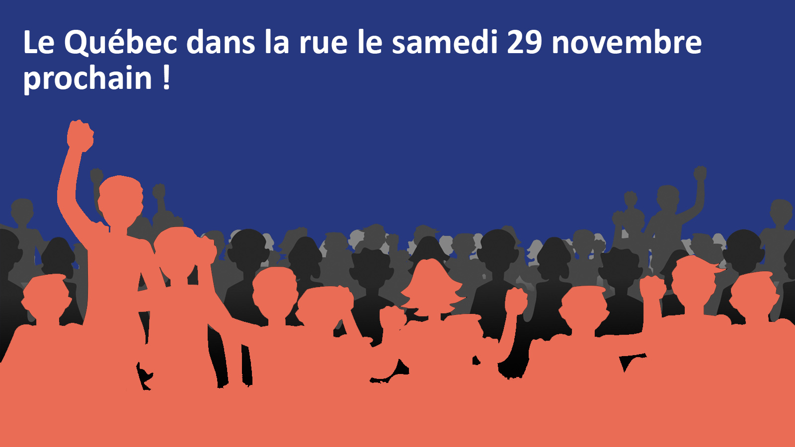 Le 29 novembre prochain, nous serons dans la rue pour protéger la vision de la société québécoise que l’on veut. Une société plus juste, plus égalitaire et plus inclusive.