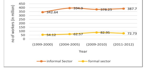 1. Peer, R. (2018). “Growth without Equality: Informal Labour in India.” URDHVA MULA 11 (avril): 71–90. pp. 73 https://www.sophiacollegemumbai.com/img/4.%20URDHVA%20MULA%20Vol.%2011%20April%202018.pdf