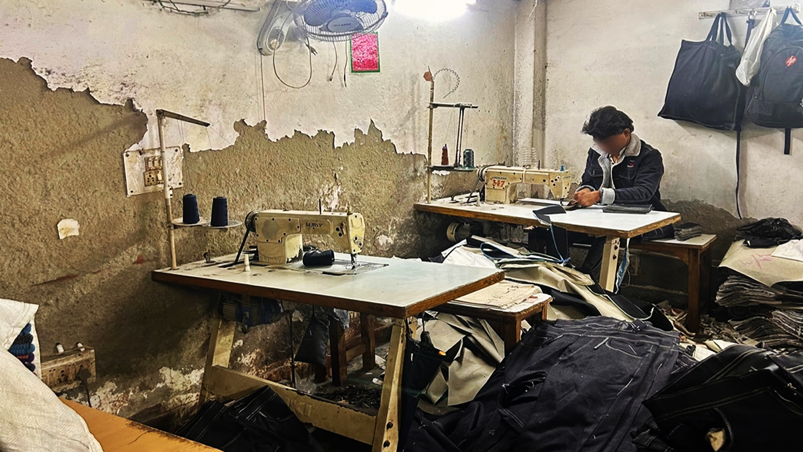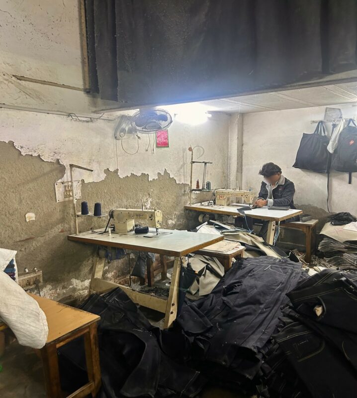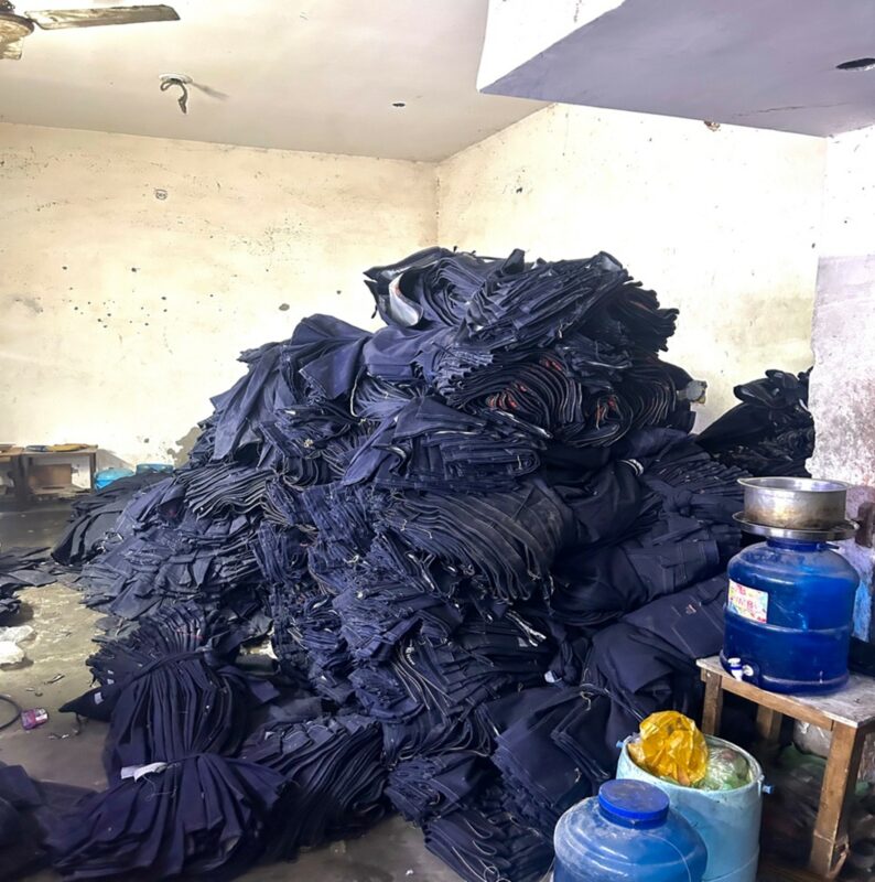 Cette phrase percutante résume la dure réalité des femmes que j’ai rencontrées dans le quartier de Kardam Puri, à Delhi, où des ateliers informels de confection coexistent avec d’autres activités. Ces femmes ont accueilli l’équipe de PAIGAM dans leur foyer – un espace qui sert à la fois de logement et de lieu de travail. Il s’agissait d’une seule pièce avec une cuisine et des matelas au sol, où elles coupent des tissus, fixent des étiquettes et emballent des répliques de jeans de marque. La plupart d’entre elles sont des migrantes originaires de l’Uttar Pradesh, jonglant entre des tâches épuisantes et les responsabilités domestiques, pour des salaires qui atteignent rarement le minimum légal.