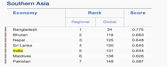 L’égalité de genre implique que toutes les personnes, quel que soit leur genre, disposent des mêmes droits, des mêmes opportunités et du même accès au pouvoir – un objectif encore loin d’être atteint en Inde. Plusieurs pays peinent à progresser dans cette direction, et c’est pourquoi l’Indice d’inégalité de genre constitue un outil essentiel pour évaluer la santé, l’autonomisation et la participation des femmes au marché du travail. Selon le Global Gender Gap Report 2025 du Forum économique mondial, l’Inde occupe le 131ᵉ rang sur 148 pays, avec un score global de parité de 64,4 %, ce qui en fait l’un des pays les moins avancés en matière d’égalité de genre en Asie du Sud.